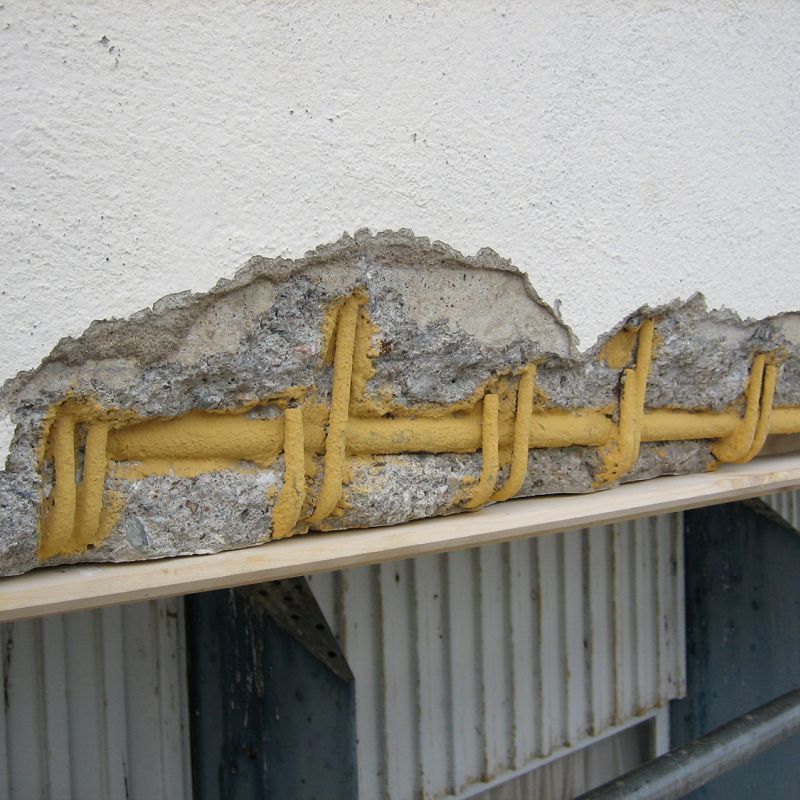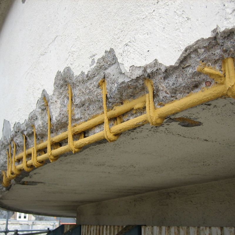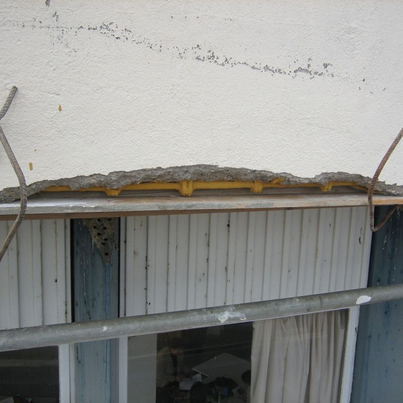 En réponse à ce phénomène, nous sécurisons par purge les matériaux pouvant tomber au sol, nous proposons de passiver les aciers et nous regarnissons la maçonnerie par un mortier adapté.
