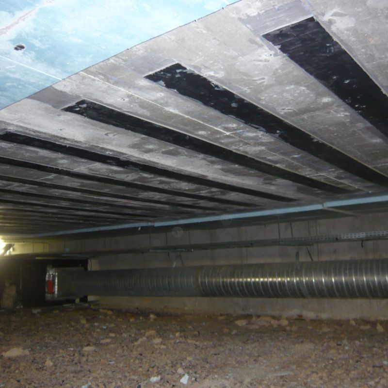 Nous proposons un renforcement de la structure béton par la mise en place de plat ou lamelle carbone, la très forte résistance du carbone permet de reprendre les efforts liés au changement d’utilisation (machine, archive, voiture….)